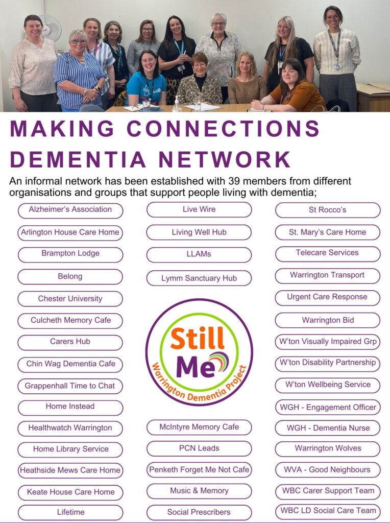 Making Connections is part of the Still Me Warrington Dementia Project and is a network of over 35 different services and groups who support people living with dementia and their carers.