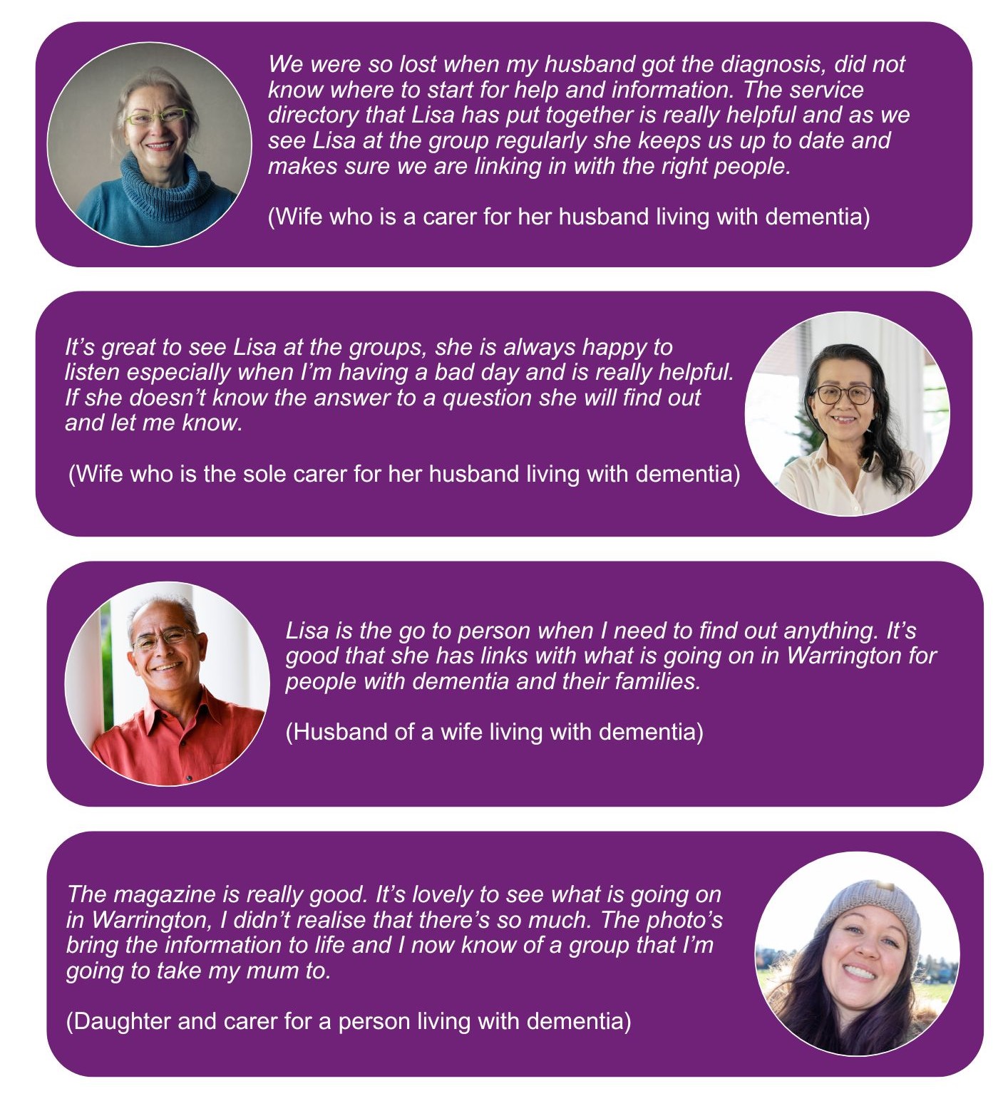 Our findings will be fed back to the Warrington Dementia Transformation Board who are looking to improve dementia care for all in Warrington.